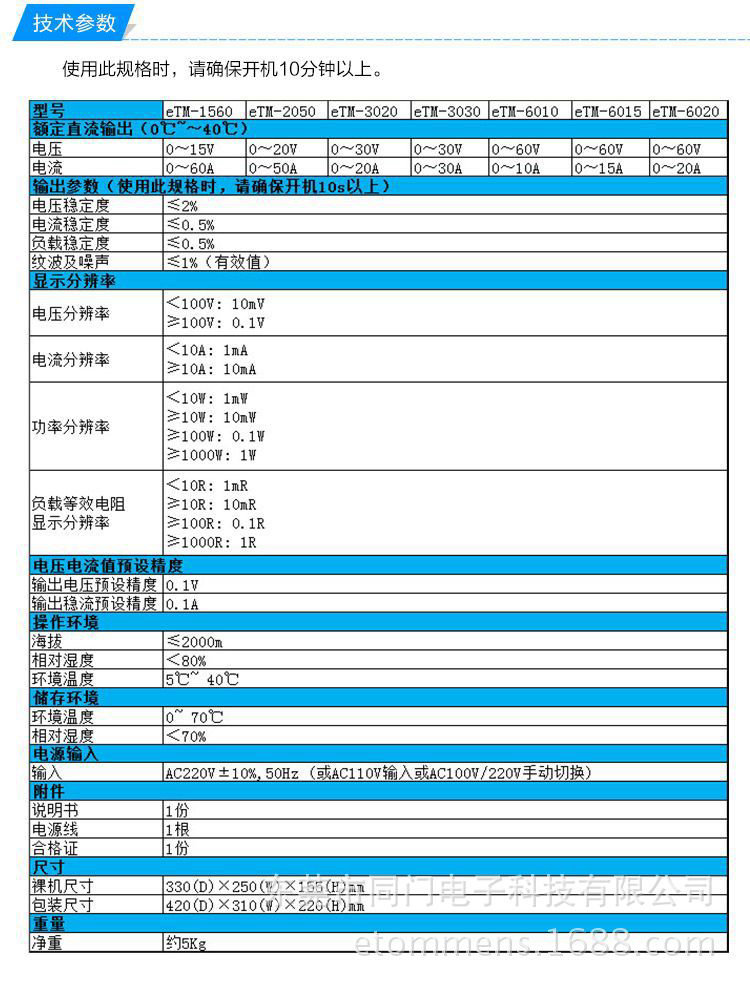 同门 eTM-3020plus 稳定 大功率 高精度 开关电源 600W 30V 20A
